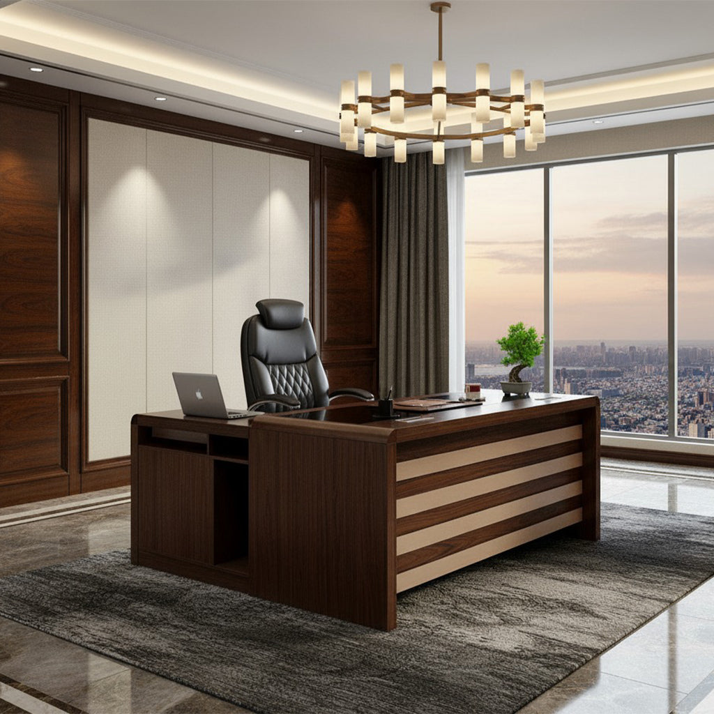 The Vina Executive Table redefines office elegance with its luxurious combination of rich wood tones and a sleek black tinted glass top. Designed for leaders who value both style and functionality, it offers a commanding presence in any executive workspace. Complete with a lateral cabinet and mobile drawer pedestal, the Vina Table ensures organization, sophistication, and efficiency all in one refined setup.