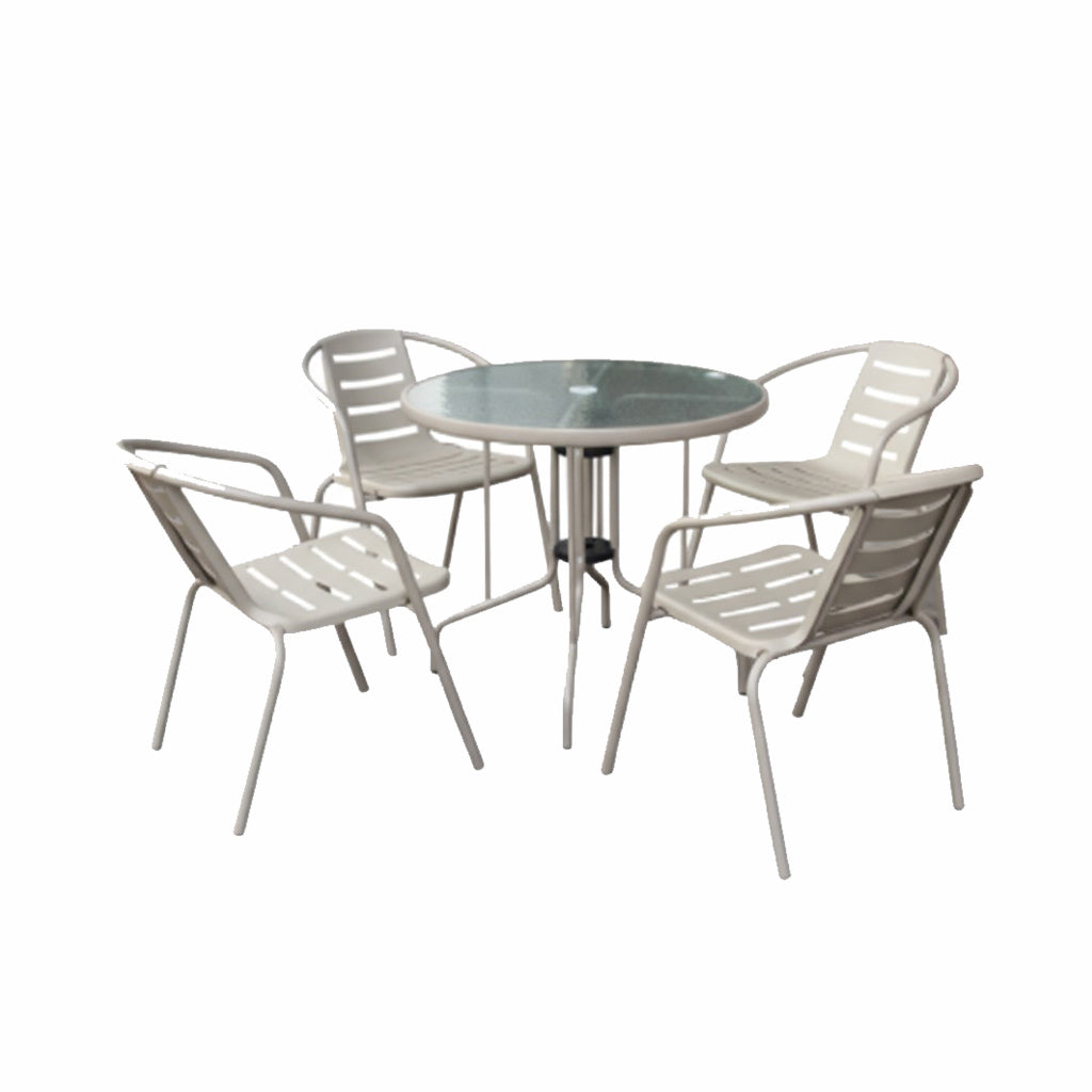 The Olivia Outdoor Set combines simplicity and practicality in one durable package. Designed with PP plastic seats and metal legs, it offers strength, comfort, and weather resistance—perfect for patios, garden nooks, and sunrooms. The round tempered glass table adds a sleek touch, making it ideal for relaxing with your morning coffee or entertaining guests outdoors.