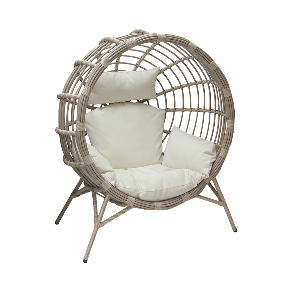 Add a touch of resort-style relaxation to your space with the Watermelon Outdoor Chair. Designed with a unique rounded frame inspired by the shape of a watermelon slice, this chair offers a cozy and stylish retreat whether placed indoors or outdoors. The beige synthetic wicker rattan finish blends naturally with any setting, while the plush free cushions provide exceptional comfort.