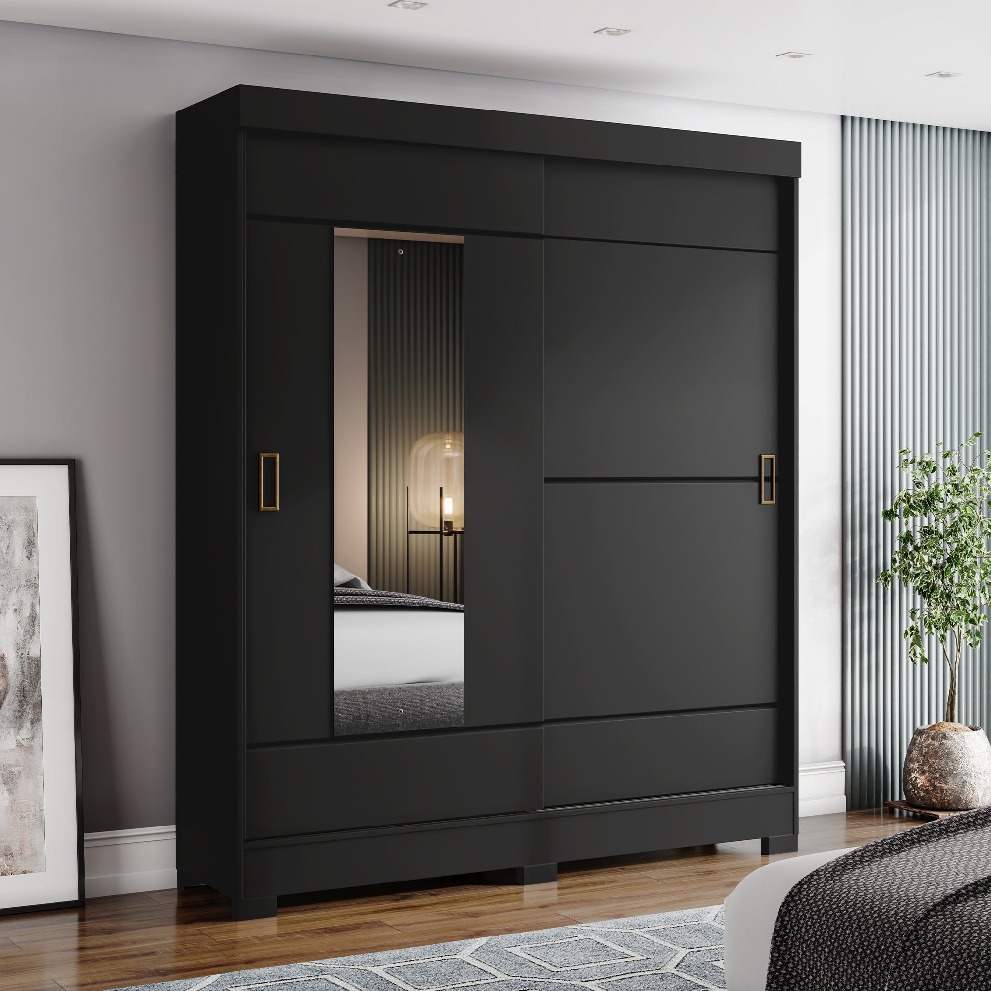 - Full-length mirror panel for added convenience