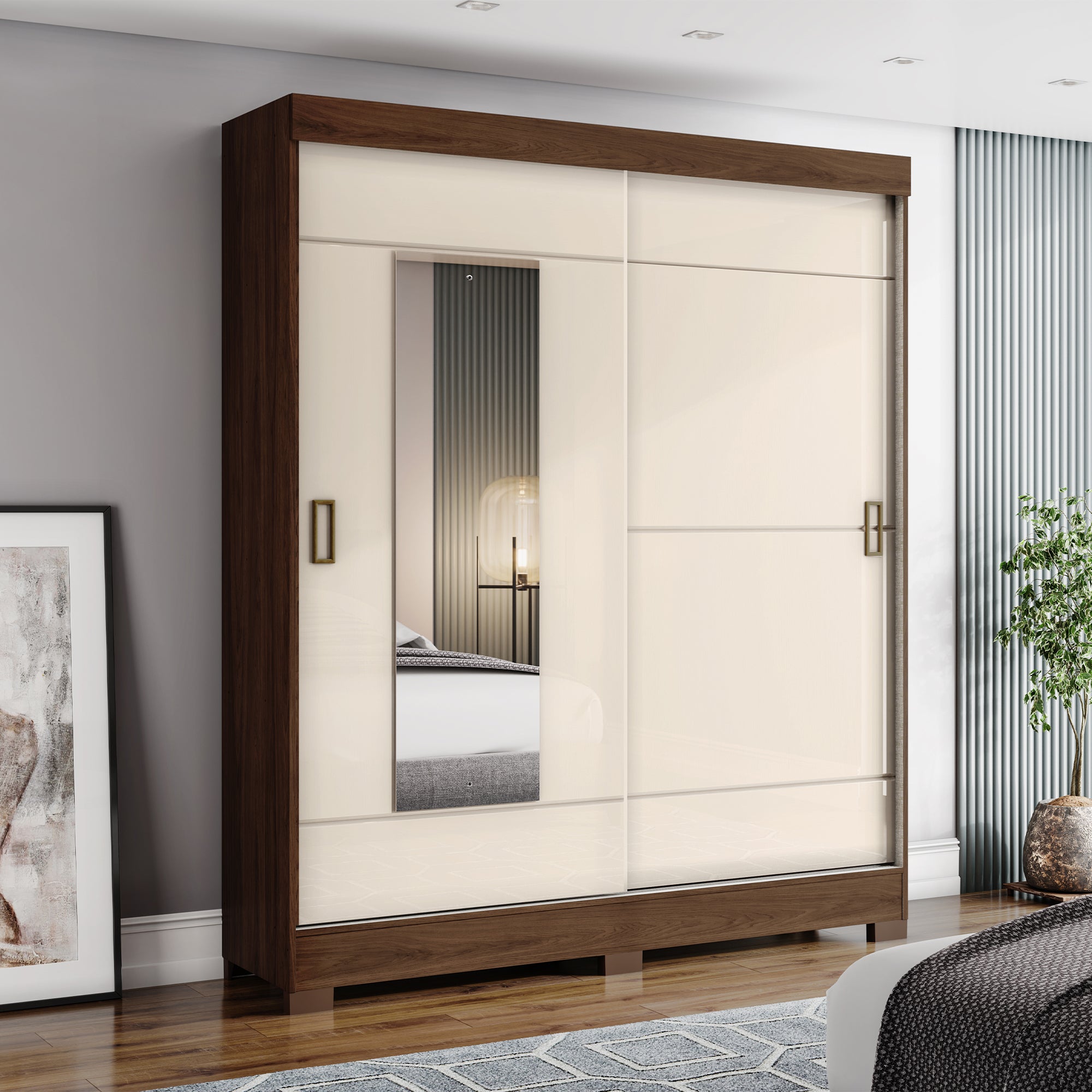 The Laura Wardrobe combines modern design with practical functionality, offering the perfect storage solution for contemporary spaces. Its two sliding doors, integrated mirror, and organized interior make it a stylish and efficient addition to any bedroom. Ideal for those seeking both elegance and utility, this wardrobe enhances any room with its refined aesthetic.