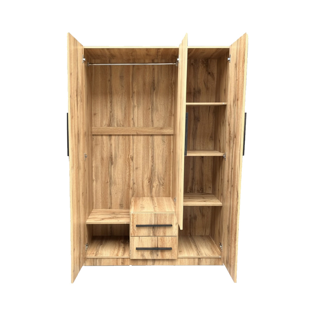 The Rica 3-Door Wardrobe offers a blend of natural warmth and modern function. Designed in a woton oak finish, it features clean lines and practical compartments — perfect for organizing clothes, linens, and essentials while enhancing your room’s cozy aesthetic.
