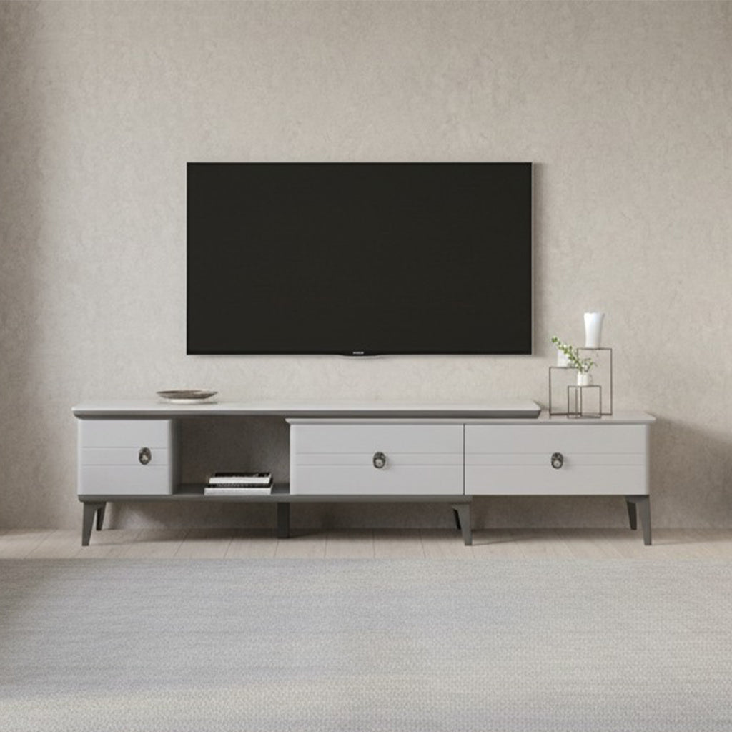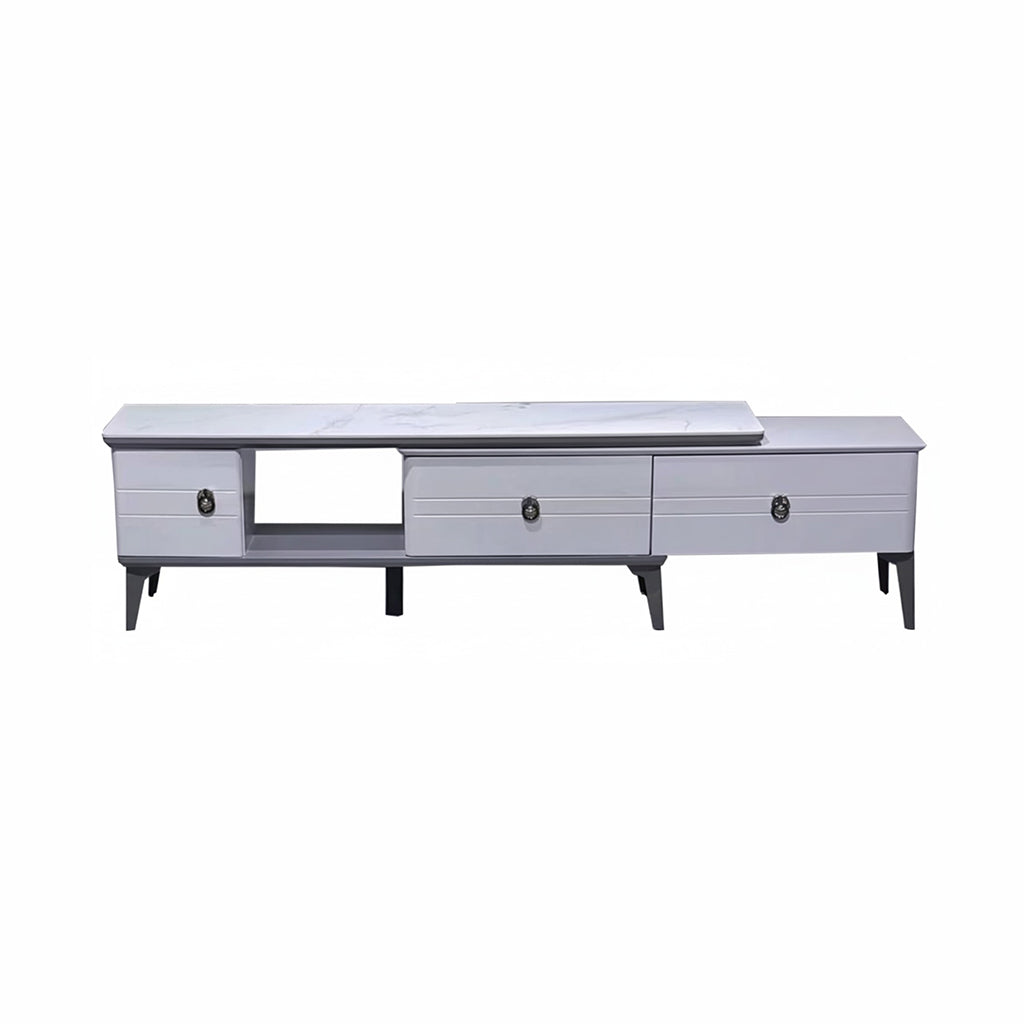 The Yunah TV Cabinet brings a touch of understated sophistication to modern interiors. Its clean white and gray palette, complemented by vintage-inspired drawer handles, creates a refined balance between contemporary design and classic charm. The marble-style top provides a smooth and elegant surface, while spacious drawers and open shelving offer convenient storage for your entertainment essentials. Perfect for minimalist or transitional spaces, Yunah exudes effortless elegance.